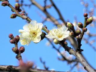| 12月26日(金) 晴れ 昼:11℃~ 9℃ 湿度:およそ39% 今日は昼にちょっと用事があったので出かけてきました。用事を済ませて、買い物に行って今晩の食事を決めました。今年のクリスマスに、まだ「骨付き鶏もも肉」を食べていないので、生の骨付き鶏もも肉を買ってきて、家で「照り焼き風」に焼いて食べることにしました。ん~今日は禁酒する予定だったんですが…白ワインを冷やしておいたので、飲んでしまうことにしました(*^O^*)♪ 買い物の帰りに、梅の木を見ると…